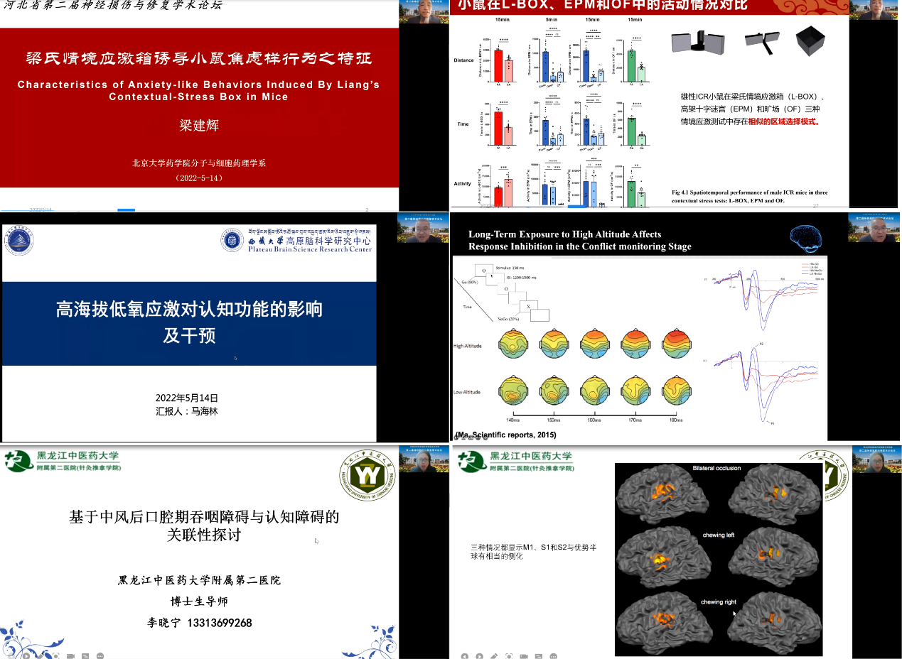 北京大学梁建辉研究员、 西藏大学马海林教授、黑龙江中医药大学李晓宁教授先后作学术分享 梁建辉研究员通过对现有测试及测试模型的优缺点进行研究,自行设计并制作了一种全新的“基于趋近-回避冲突”的焦虑相关小鼠行为学测试装置:梁氏情境应激箱,并为该测试制定了详细的行为评价指标与实验程序。马海林教授介绍了高原缺氧环境对认知能力的影响研究。基于认知资源约束理论,通过ANT,GoNoGo、Flanker Oddball范式和n-back任务的事件相关电位(ERP)探讨了高原缺氧对注意和执行功能的影响,以及锅庄舞训练对高原移民认知功能的干预效果。李晓宁教授重点介绍了中风后吞咽障碍与卒中认知障碍及其特色针灸治疗方案,并以真实案例分析了针灸对吞咽障碍与卒中认知障碍的显著治疗效果。
